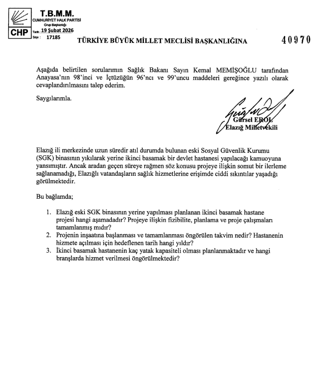 TBMM kayıtlarına göre önergenin veriliş tarihi 19 Şubat 2026. Ancak aradan geçen 40 güne rağmen ne önergenin içeriği Elazığlı vatandaşlarla paylaşıldı ne de Milletvekili Erol konuya ilişkin herhangi bir açıklama yaptı. Siyasi kulislerde, “Önerge kasıtlı olarak mı saklandı? Vekil neden kendi önergesini bile halka duyurmadı?” soruları gündeme geldi.