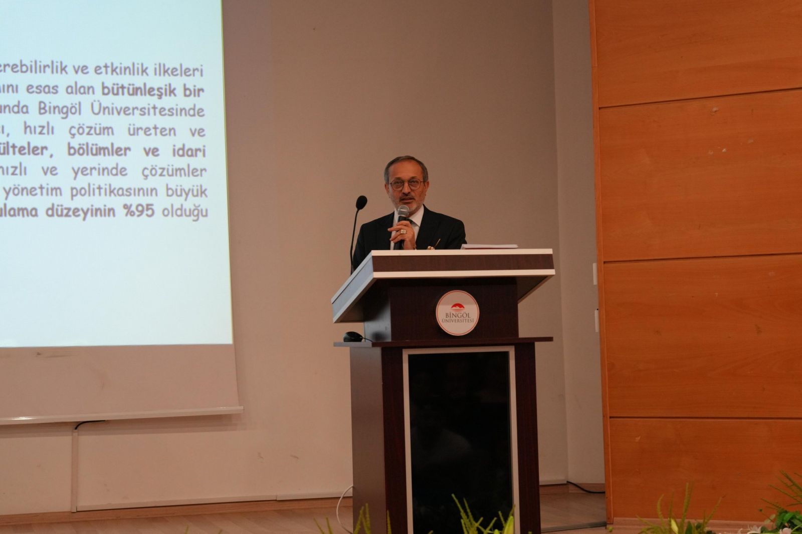 Sunumunda üniversite yönetişim politikası ve kurumsal işleyiş ilkelerine vurgu yapan Rektör Çelik, tüm fiziksel ve dijital kaynakların planlı ve verimli kullanımını hedefleyen varlık yönetim sistemi politikası hakkında bilgi verdi. Kurumsal kalite kültürünün geliştirilmesi amacıyla Six Sigma, Lean Manufacturing ve yalın eğitim yaklaşımlarının süreç yönetimine entegrasyonunun önemine dikkat çeken Çelik, veriye dayalı karar alma mekanizmalarının güçlendirilmesi için istatistiksel modelleme yöntemlerinin uygulanacağını belirtti.