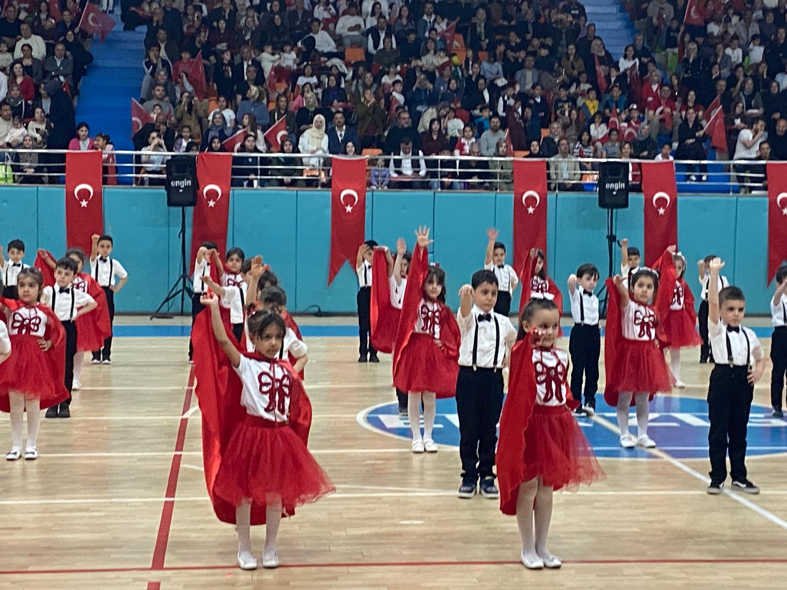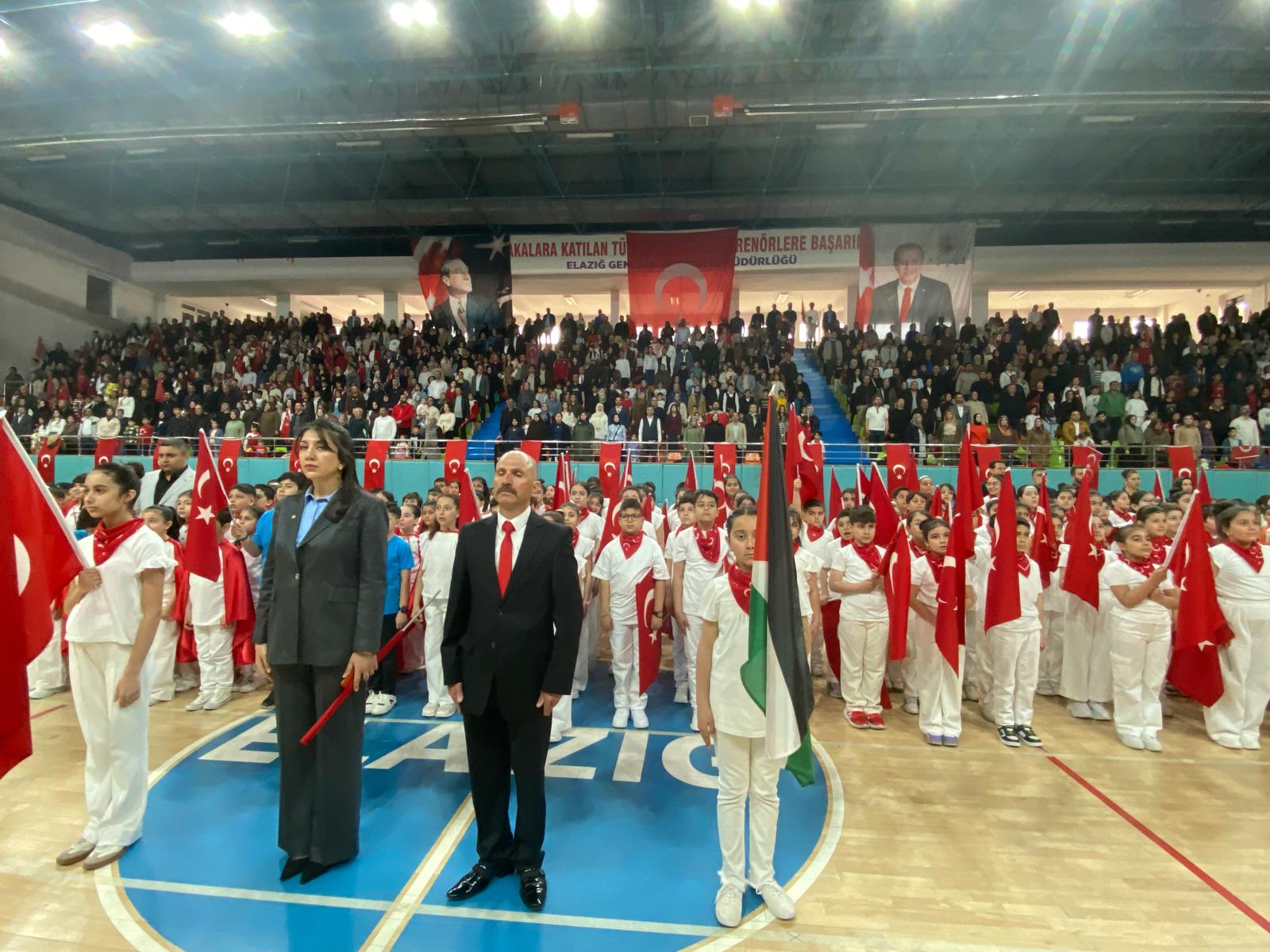 Törenler kapsamında Elazığ Gençlik ve Spor İl Müdürlüğü tarafından düzenlenen 23 Nisan Jimnastik Yarışması’nda dereceye giren anasınıfı öğrencilerine ödülleri protokol üyeleri tarafından takdim edildi. Miniklerin heyecanı ve performansı izleyenlerden tam not aldı..jpg)